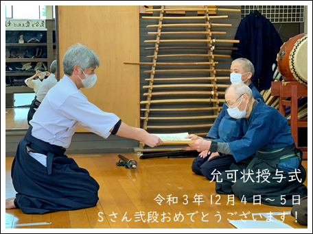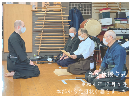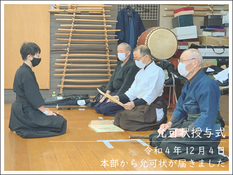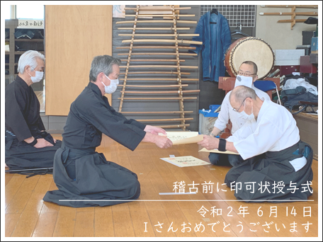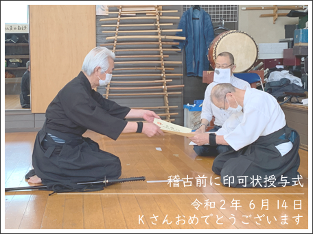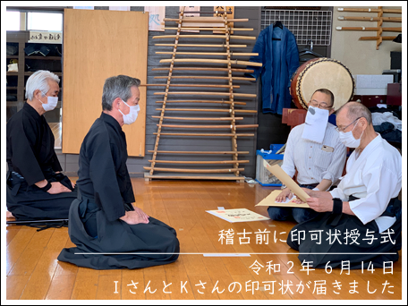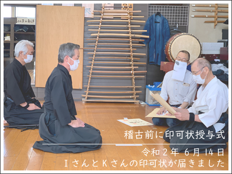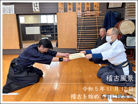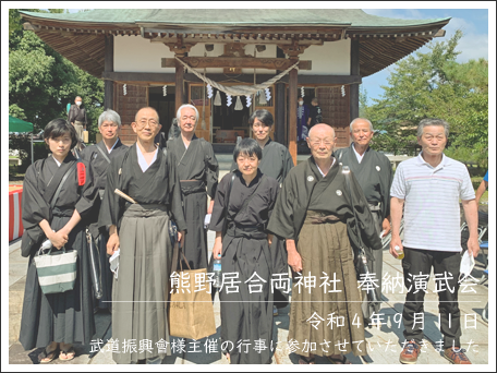 神事の後に更なる上達を祈願して演武を奉納させていただきました。
